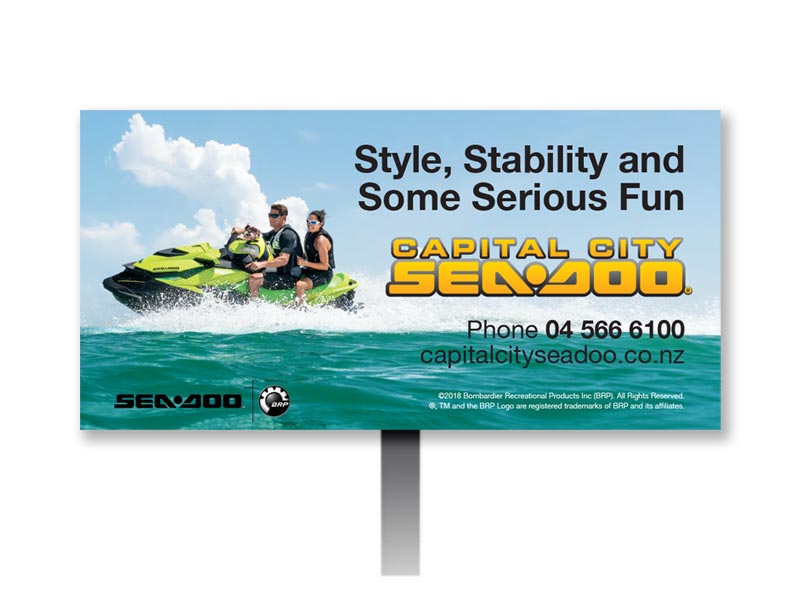 With summer holidays on the horizon, Capital City Seadoo wanted to put their products in front of as many potential customers as possible. The Hutt Motorway and adjacent railway line, packed with Wellington-bound commuters each day, provided the perfect stage.